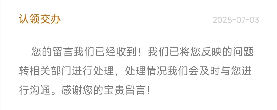 对此,官方回复已将其所反映问题转交相关部门处理,目前该建议仍处于“办理中”状态。