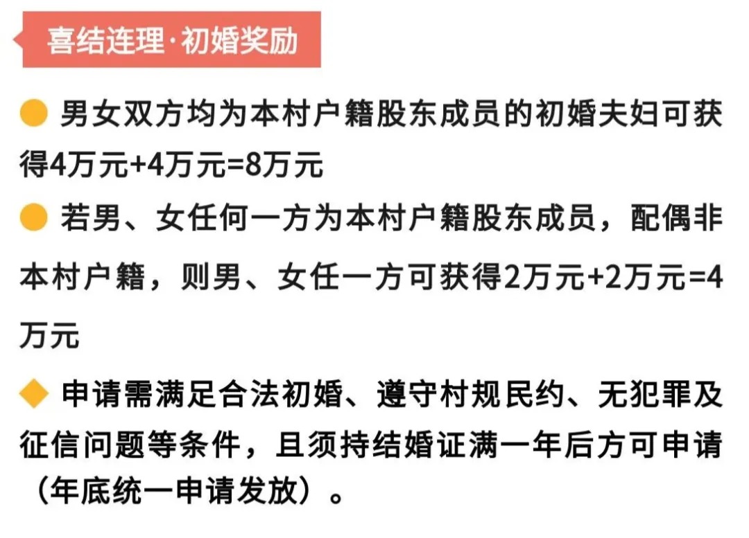 ● 日前,广州市白云区龙归街南岭推行新政,该村初婚夫妇最高可获得8万元奖励。
