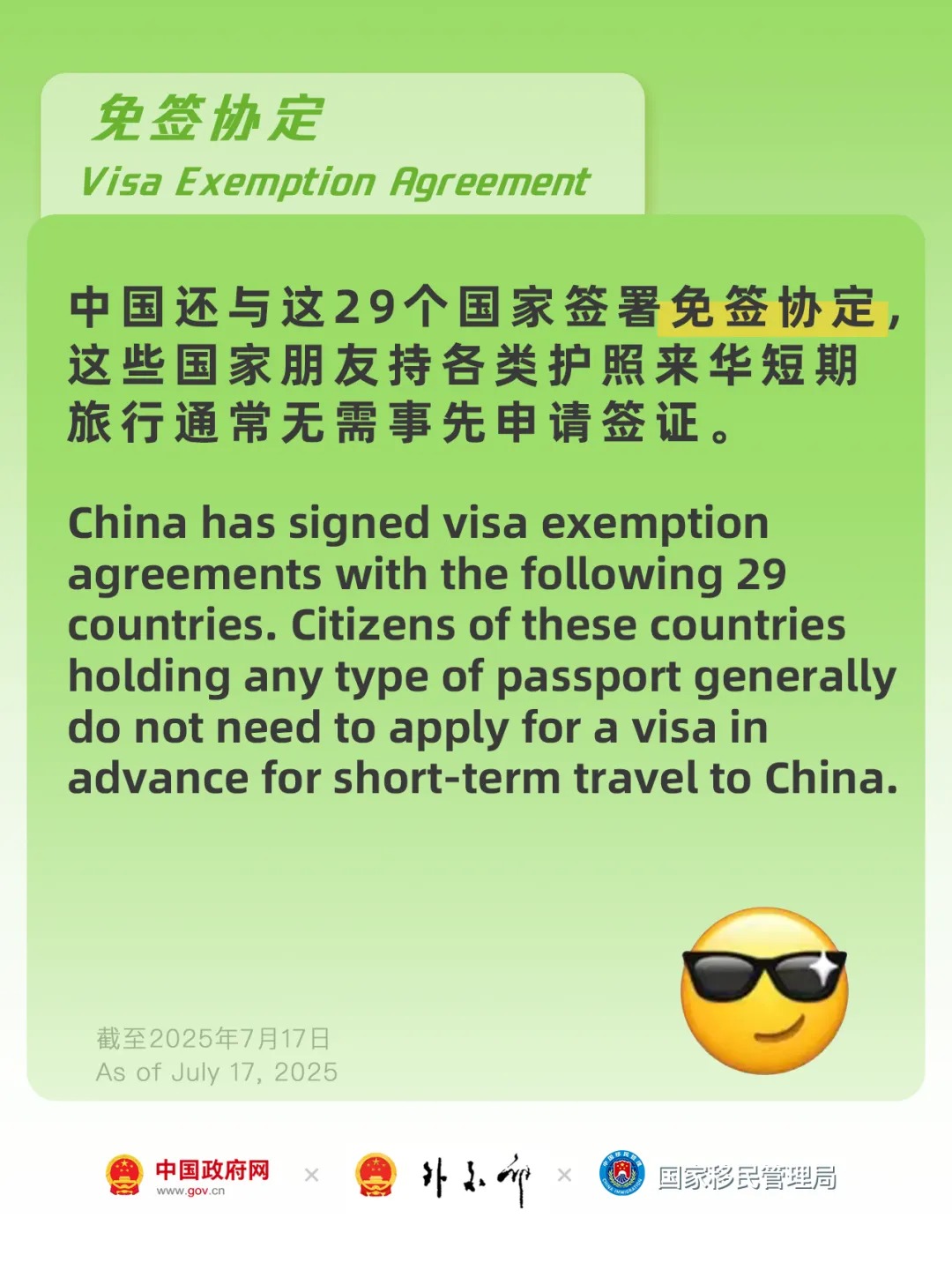 哪些国家能免签来中国?