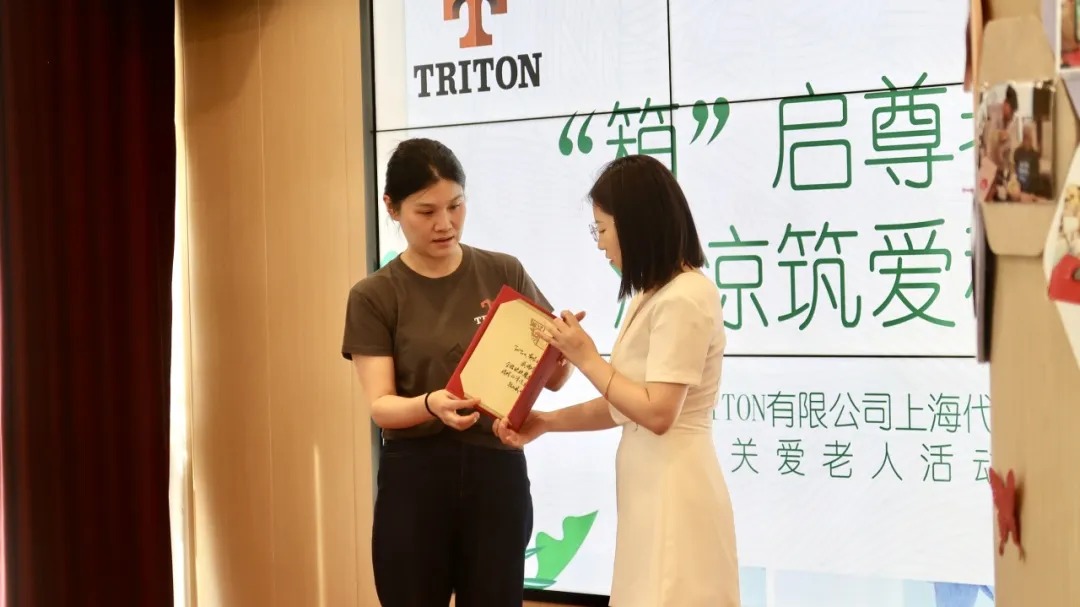 活动伊始,上海黄浦区全程玖玖馨逸养护院综管部主任首先致辞,向到场的企业代表与志愿者表达欢迎与感谢,随后向TRITON企业代表颁发捐赠证书,以表彰其为老人们捐赠清凉礼包的善举。