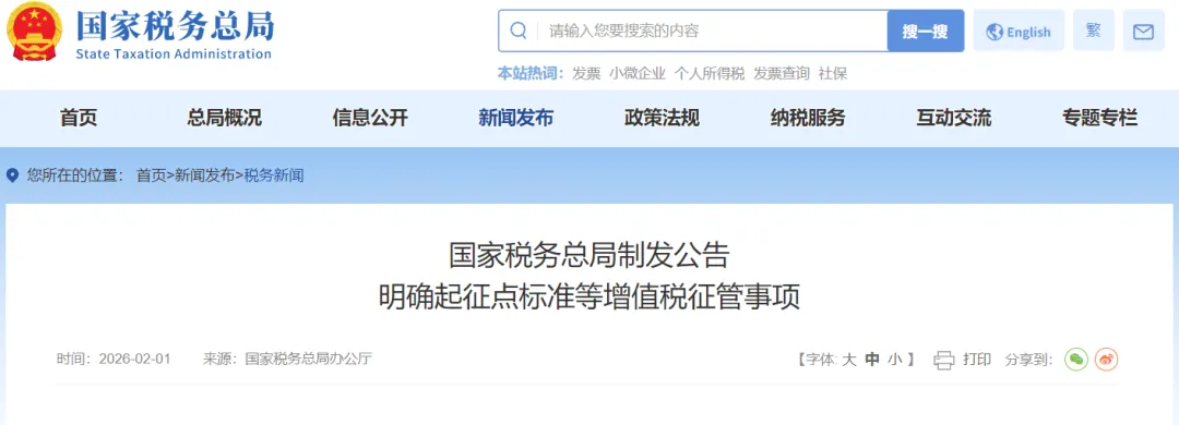 2026年1月1日起,《中华人民共和国增值税法》及其实施条例正式施行。