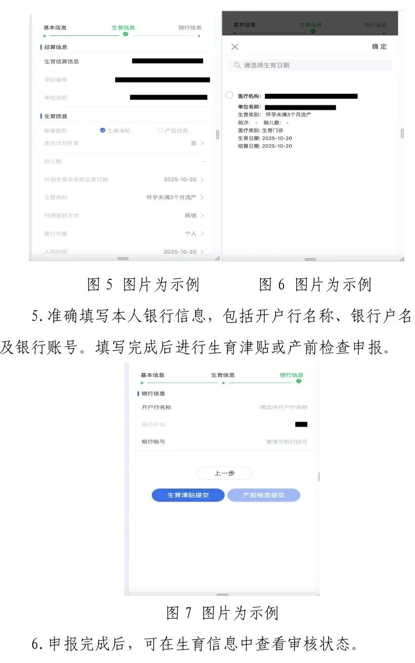 2.参保女职工应按照生育保险政策规定进行申报,申报时需保证各项申请信息、本人银行信息准确无误,确保生育待遇成功发放。