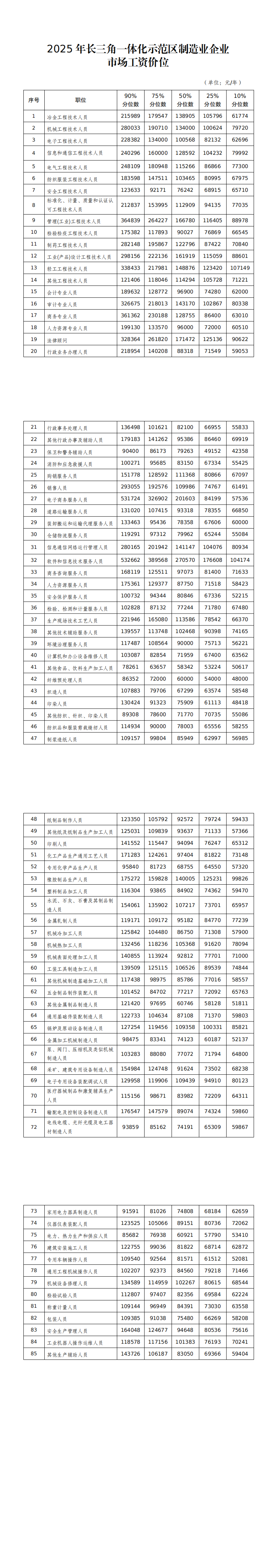 上海、江苏、浙江人力资源和社会保障部门联合发布2025年长三角一体化示范区制造业企业市场工资价位